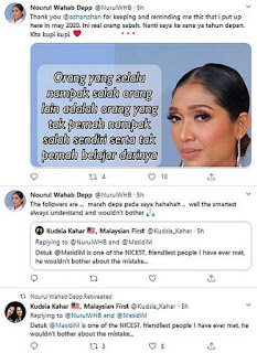 "Saya akui itu salah saya, tapi untuk menyebarkan kebencian seperti ini, ia tidak elok. Kita tengok apa yang boleh kita buat nanti," tegas penyanyi Nourul Depp menerusi ciapan di Twitter pada Khamis.